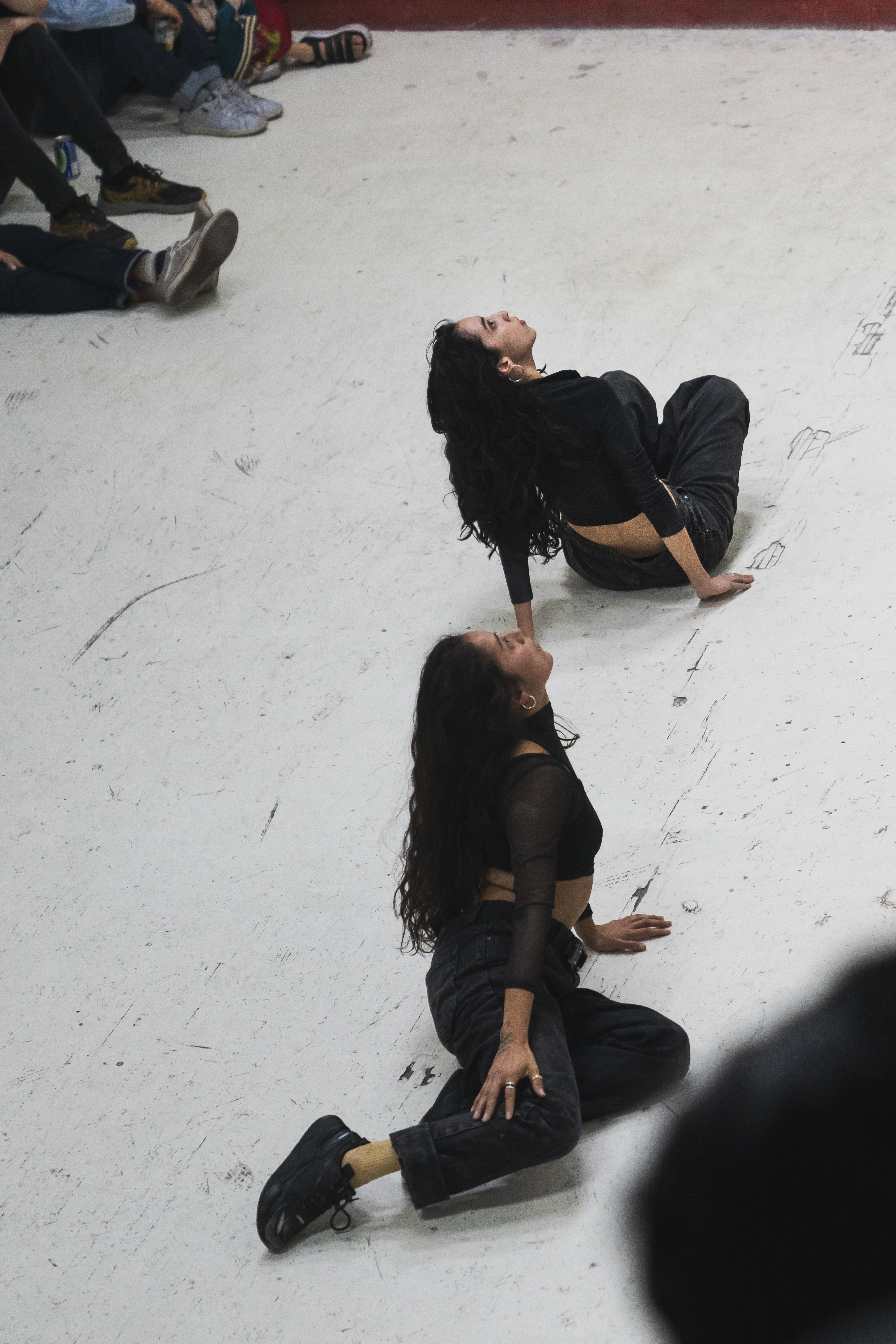 Las cámaras se vuelven una extensión de nuestro movimiento, no sólo siendo dispositivos coreográficos, si no dispositivos que crean coreografía. La proyección, por su parte, actúa como un espacio que contiene, manipula y modifica la imagen; un escenario que ofrece múltiples versiones de un mismo acto. Las conexiones entre estos diferentes modos de transmisión son coreográficas en sí mismas y esenciales para la construcción de la partitura de esta pieza.